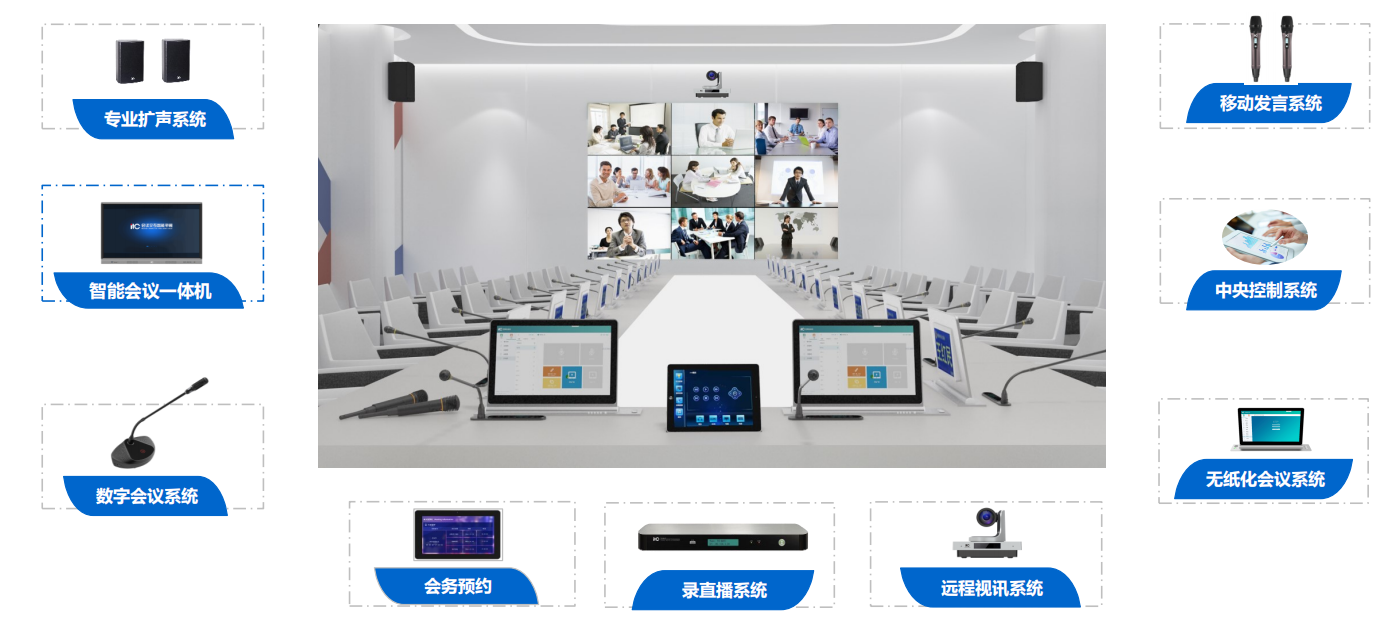 包含:视频会议、无纸化会议、智能会议平板